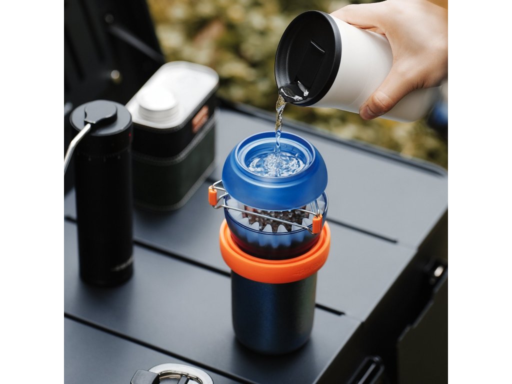 Vše v jednom a přenosné – Obsahuje dripper, stojan a nastavitelný regulátor průtoku. Ideální jak na cesty, tak pro každodenní použití.